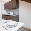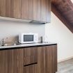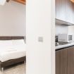 Tutti gli appartamenti bilocali sono suddivisi in: zona pranzo/soggiorno con cucina attrezzata, tavolo e sedie (stoviglie, piastre ad induzione, forno a microonde, frigorifero, mini freezer a lavastoviglie), bagno privato con doccia e zona notte arredata con letto matrimoniale oppure con n. 2 letti singoli.